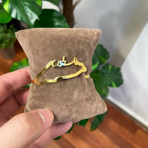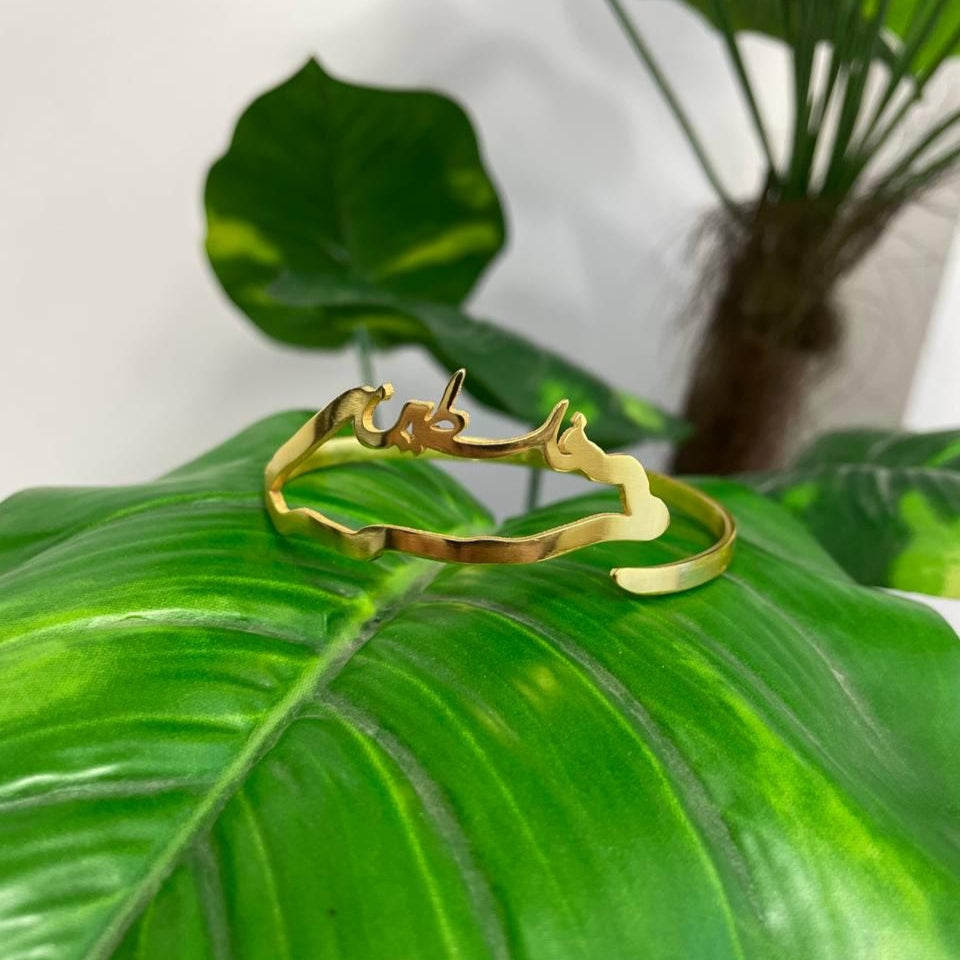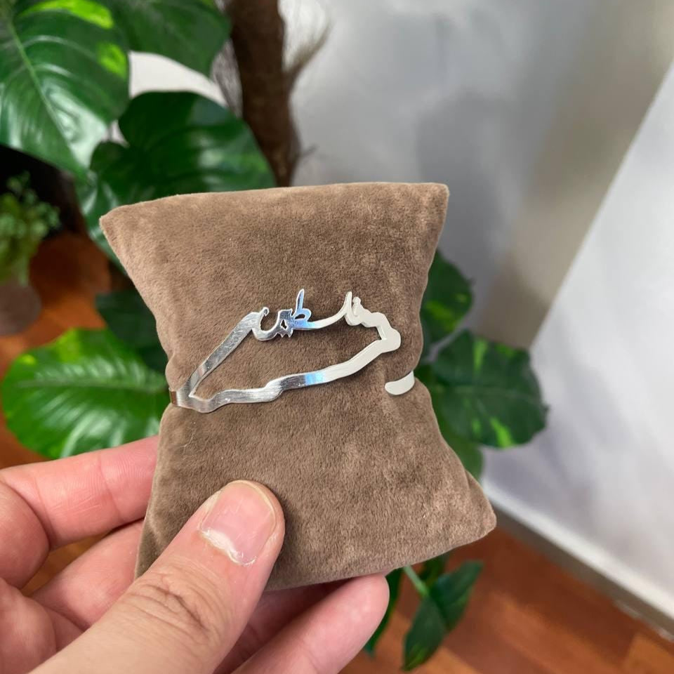 Adjustable Arabic Letters Bangle Bracelet - Brass with Gold or Silver Plating For Men and Women. 100% brand new and high quality. Palestine with Map (خريطة فلسطين) Lettering.