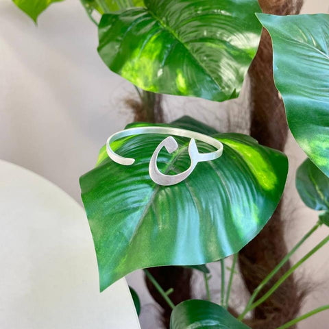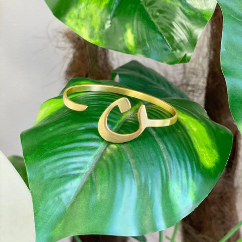 Adjustable Arabic Letter Bangle Bracelet - Brass with Gold or Silver Plating For Men and Women. 100% brand new and high quality. Nun Letter (ـن) Equivalent (N).