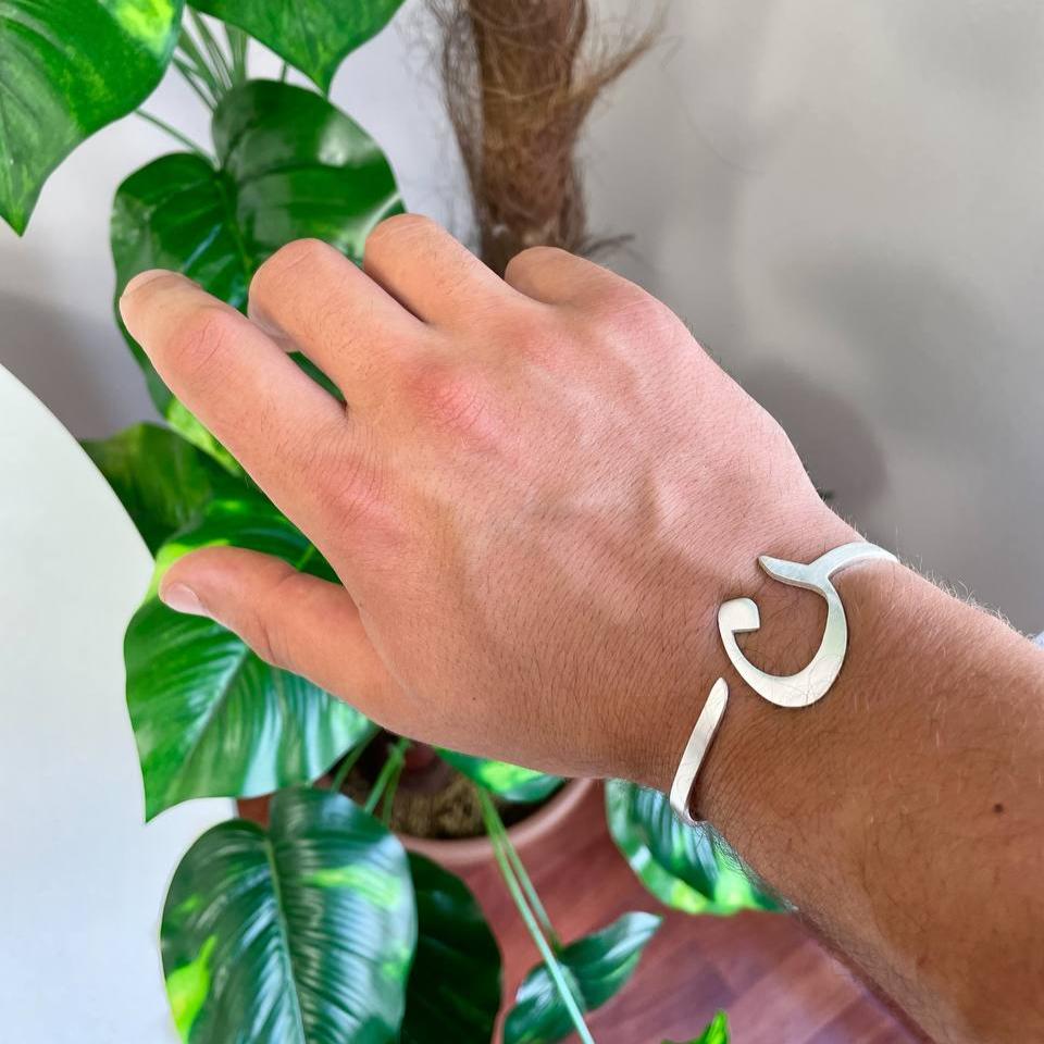 Adjustable Arabic Nun (N) Letter Bracelet - Brass, Gold / Silver Plating -Unisex