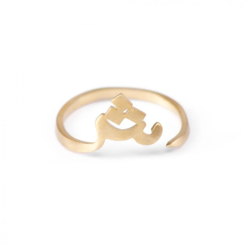 Adjustable Arabic Shīn (SH) Letter Ring - Brass, Gold / Silver Plating - Unisex
