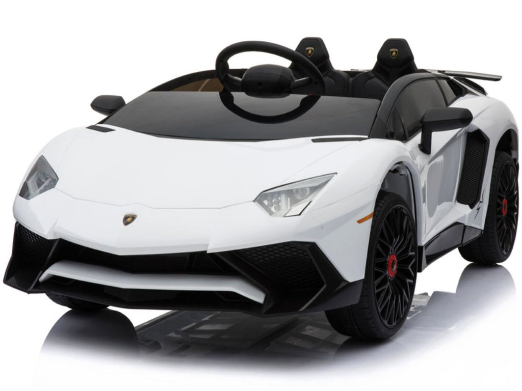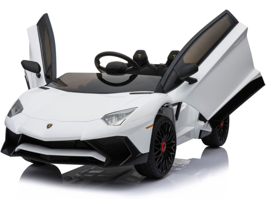 Cruise in style with the Mini Moto 12v Lamborghini, be the most popular kid in the neighborhood! Features Include: Opening Wing Doors, 2.4ghz Remote Control, EVA Tires, Leather Seat, Push Button Start, USB, TF Card Socket, MP3 Port, Radio, Seat Belt, 4 Wheel Suspension and Working Lights.
