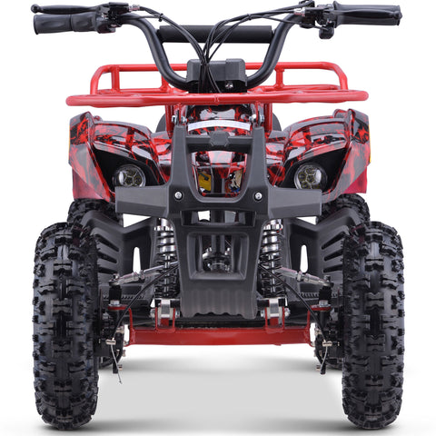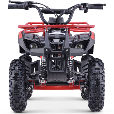 The MotoTec 36v Sonora Mini ATV is the ultimate kids ride! Great for driveway and backyard fun, cruise over bumps and speed through dirt trails with ease. Comes standard with front & rear suspension, front & rear brakes, front & rear carrying racks and large 13 inch knobby pneumatic tires. This mini quad provides longer ride times than the competition with THREE large 12v 12amp hour batteries. New features include: headlights, parking brake, key start, battery meter, half twist throttle, forward & reverse.