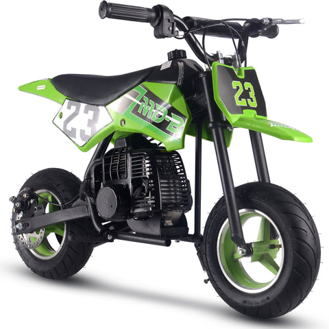 The MotoTec DB02 50cc Kids Supermoto Dirt Bike - The perfect kids starter dirt bike. The latest generation of 50cc mini bike engines are faster, torquier, more reliable and even easier to set up and start than ever before. 2-Stroke engines are preferred as they provide almost double the power of the same size 4-stroke. Easy pull start, improved carburetor and all of the standard safety features, support and reliability MotoTec provides.