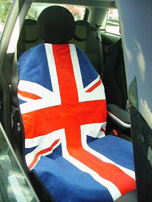 Seat Armour Towel Seat Cover with Union Jack Red/White/Blue Flag (SA100MINIRWB), Own a Mini Cooper or want to show off your loyalty to the British Flag? This Seat Armour Seat Cover with the red, white, and blue colors of the British flag can make you do just that!