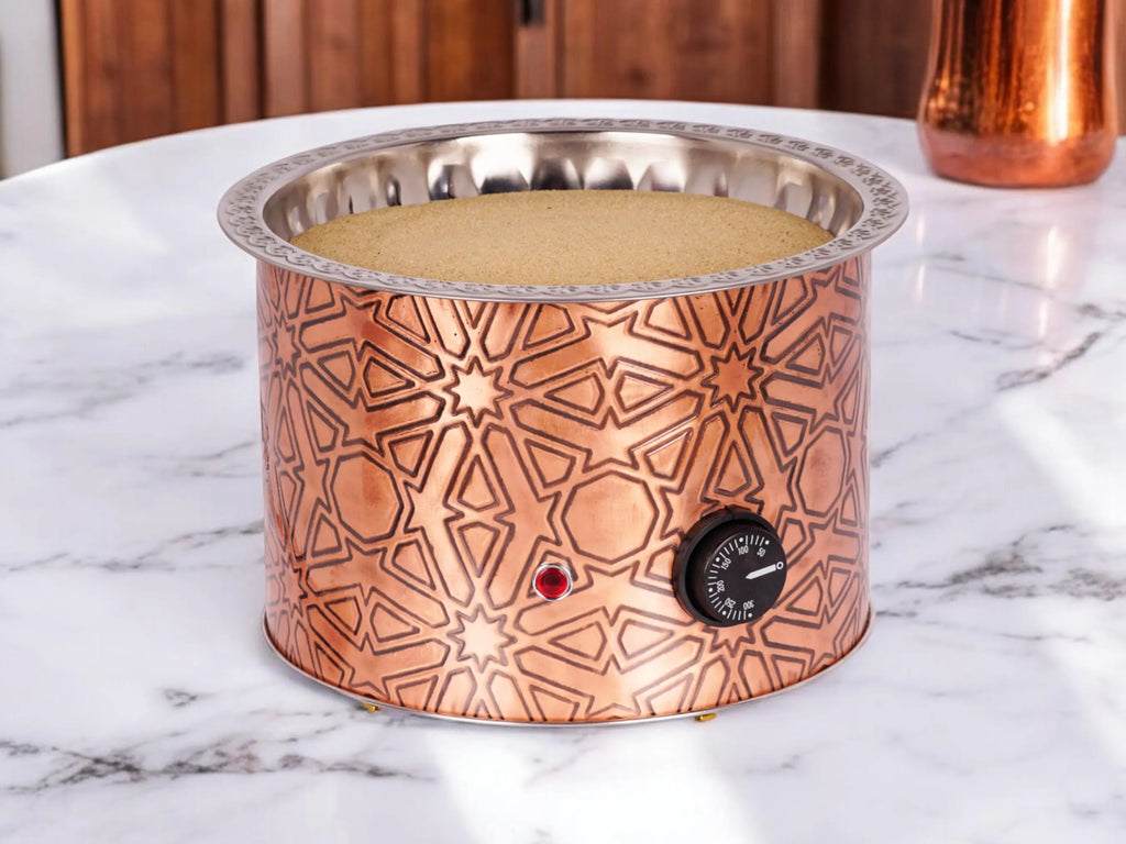 The Copper Sand Coffee Maker is made from high-quality copper and uses the traditional sand heating method. Perfect for homes, small cafés, or gatherings, it brings the warmth, tradition, and beautiful design of Turkish coffee into your home with ease!